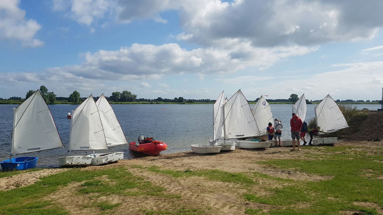 ‘Dit rustige vaarwater is een unieke plek om kinderen in een veilige omgeving zonder beroepsvaart hun zeillessen te laten volgen. We beginnen en eindigen de les in de haven van Culemborg of we wisselen op het strandje bij de afgraving. Met meer ervaren zeilers varen we bij goede omstandigheden ook op de Lek.’
