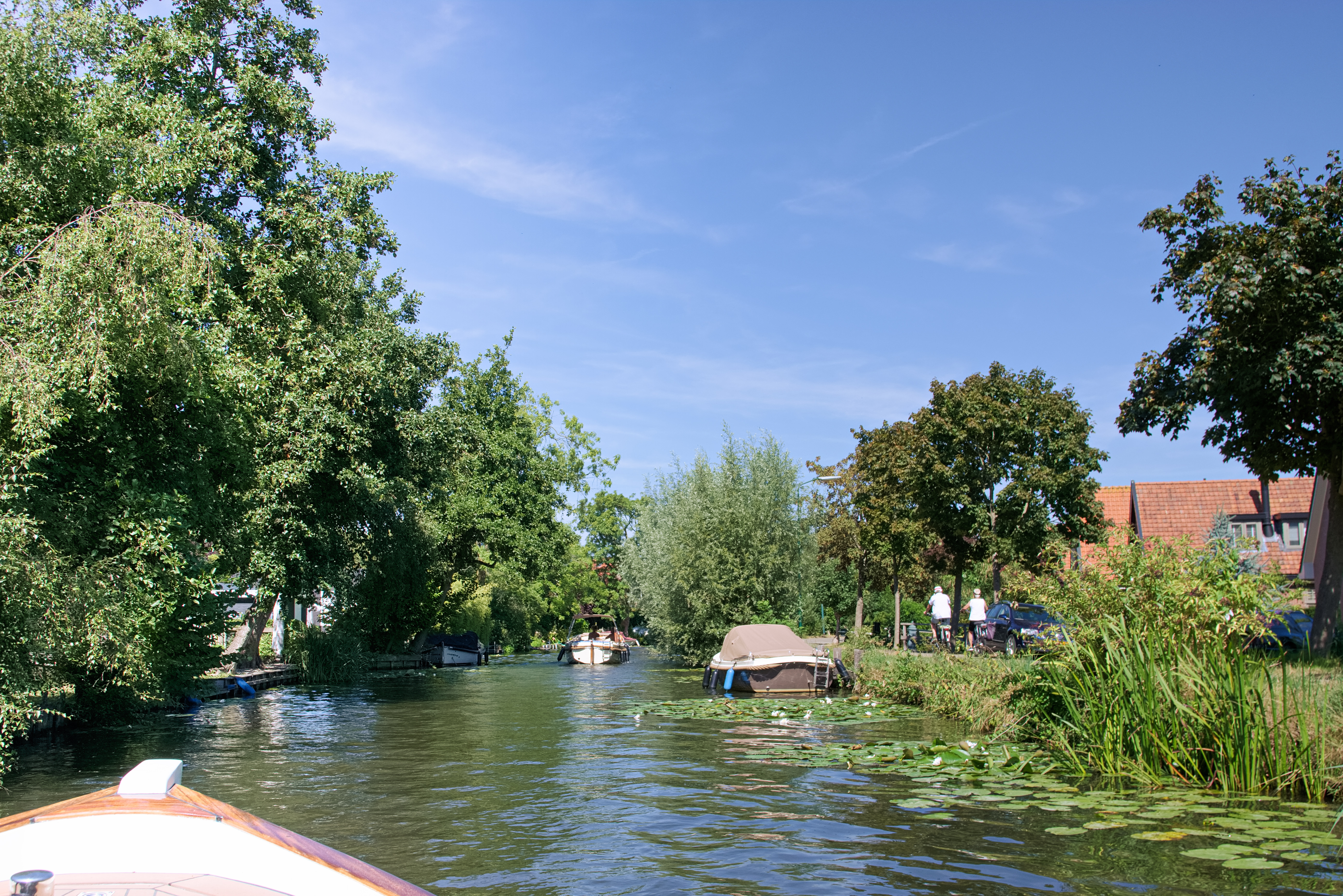 We maken een toertocht rondom Vinkeveen over kleine riviertjes als de Angstel, de Winkel en de Waver. De wateralmanak typeert de Angstel als 'kronkelend fraai polderwater'. We willen graag weten of die typering klopt en maken daarom een rondje met de Angstel als uitgangspunt.