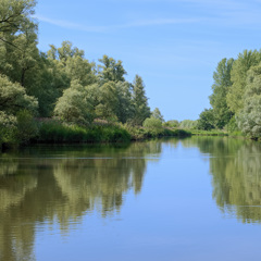 We varen via de Biesboschsluis in Werkendam de Brabantsche Biesbosch in, het Steurgat op. Betrekkelijk vroeg in de morgen is Inge aan boord gestapt. Ze komt uit Drimmelen, kent het gebied goed en is een fervent natuurliefhebber. Ze ziet onze sloep voor het eerst en is aangenaam verrast door de hybride aandrijving : 'Die elektromotor gaat nog van pas komen vandaag, let maar op!'. Op onze vraag of we vandaag bevers gaan zien moet ze grinniken : 'Het heeft geen zin te gaan zitten turen. Als je een bever tegenkomt is die echt niet te missen!'. En over de kans op een ontmoeting overdag : 'Daar zou ik maar niet vanuit gaan. Ze worden pas weer aan het eind van de dag actief'. We doen net alsof we niet teleurgesteld zijn. Eigenwijs blijven we natuurlijk toch - een beetje sluiks, dat wel - naar de oevers turen, wie weet …