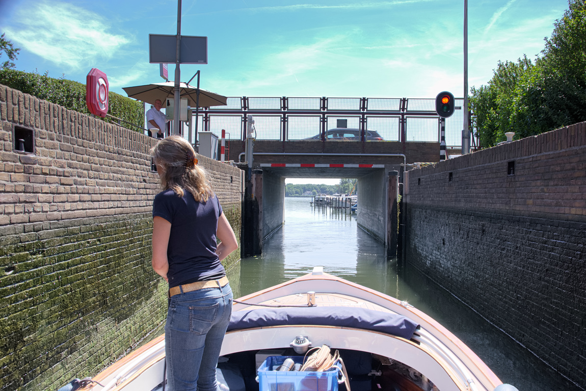 Op de Bergsluis in het Noorderkanaal stapt Suzanne in. Ze komt uit Hillegersberg, heeft gestudeerd in Rotterdam en is hier dus volstrekt thuis. We varen rechtdoor om op de Kralingse Plas te komen. Daarvoor moeten we door de kleine Kralingse Verlaat. Vanwege een drempel is de diepgang van de sluis beperkt tot 1m40. De sluis heeft een verval van een kleine anderhalve meter. Suzanne blijkt de sluiswachter te kennen en neemt diens vleiende opmerkingen met een charmante glimlach in ontvangst. Als we uit de sluis komen varen we een echte stadsplas op. De plas zelf is heerlijk vaarwater. Niet voor niets is het een populaire zeilplas. Eigenlijk is het voor een stadsplas best wel een weidse watervlakte. En tegelijkertijd is het ook weer niet zo groot dat het zijn knusheid verliest.  Het is er eigenlijk altijd gezellig druk. Geen wonder natuurlijk, de plas is onderdeel van de meest sophisticated wijk van Rotterdam.  Wie zich aan de voorgeschreven snelheid houdt, wordt – als er een beetje wind staat - volop ingehaald door zeilboten. We gaan er eens goed voor zitten en beginnen met een rondje maken naar alle hoeken en gaten van de plas. Het belooft een heel erg aangenaam dagje te worden!