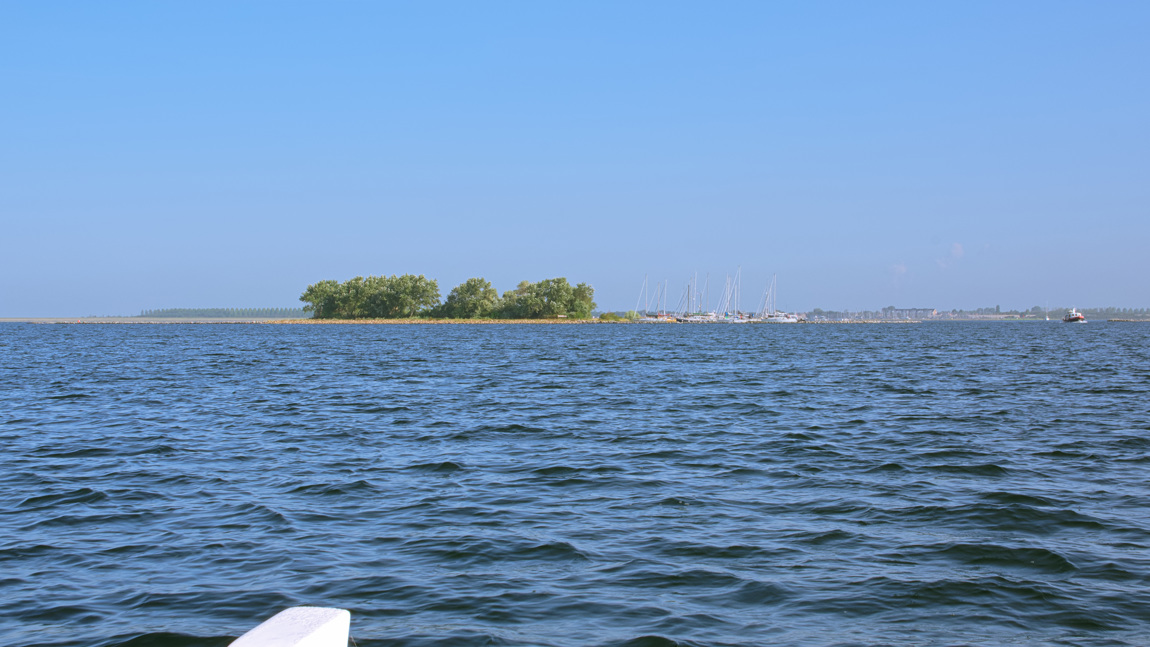 Meteen na de sluis heb je aan bakboord de jachthaven Bruinisse. We gaan er even kijken en stellen vast dat zeilboten hier de overgrote meerderheid van het botenbestand vormen. We verlaten de jachthaven en varen het meer op. Als ik haar naar de reden van haar voorkeur voor dit vaarwater ten opzichte van het Haringvliet vraag, heeft Gabriëla niet veel woorden nodig: ‘Je hebt hier zout water en dus geen muggen en geen blauwalg. Daardoor heb je helder water waar je goed in kunt zwemmen. En je hebt meerdere eilandjes waar je kunt aanleggen. Dat maakt het hier een stuk leuker dan op zoet water!’.