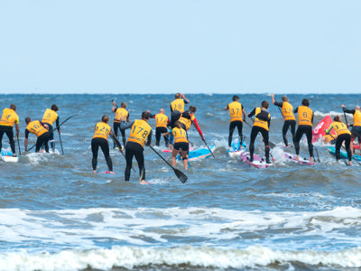 Een race met massastart mogelijk vanaf het strand, met meerdere boei-rondingen.